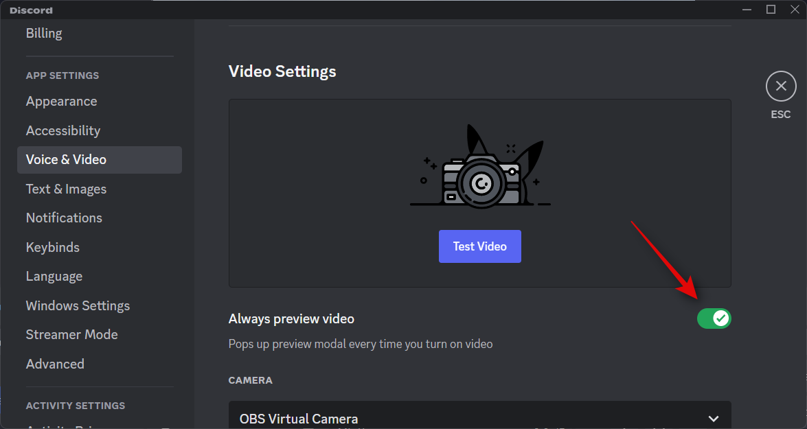 Scroll down to Video Settings and turn on the toggle for Always preview video.