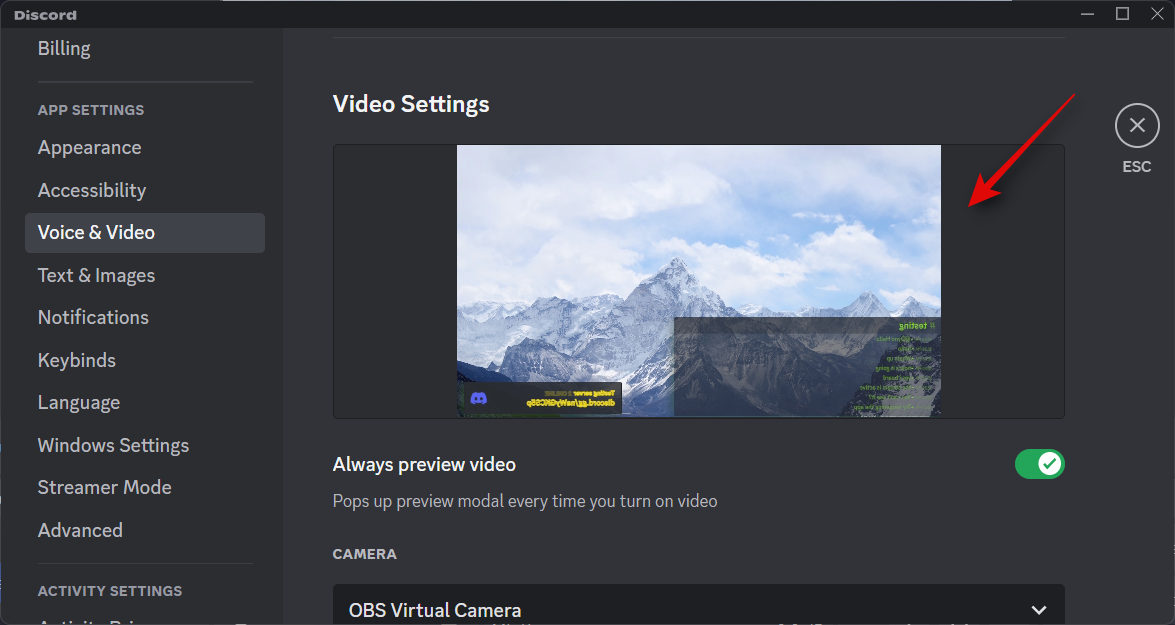 Your OBS Virtual Camera should now be selected by default.