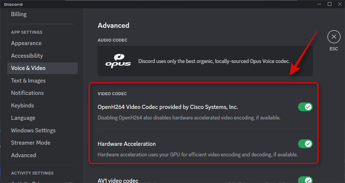 Click Voice & Video in the left sidebar.