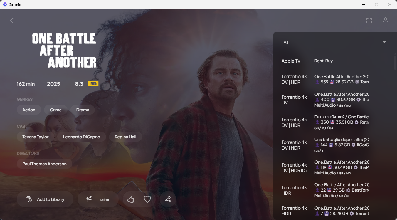 Many users also use Stremio to watch movies for free with an addon like Torrentio that sources movies and shows using torrents, along with the addon AIOStream that sorts, filters, and formats them for simpler navigation.