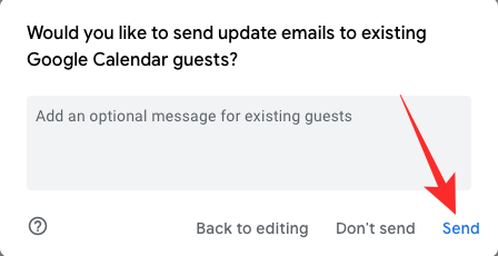 However, you can modify the event time that suits you and the attendees by setting a modified time of your choice below the event title. You can then proceed to save the changes and make sure the attendees are notified of the change by confirming to send Update emails to the guests in question.