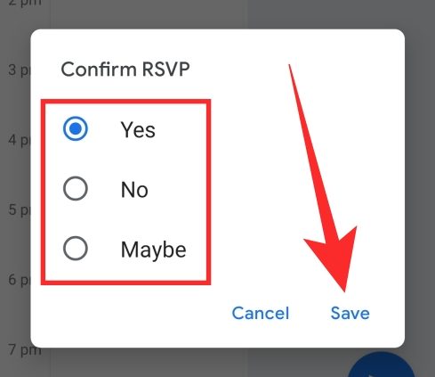 After you’re done selecting a date and time for proposing, tap on the Send icon (the one with a right arrow inside a blue bubble) at the bottom. You will be asked to confirm your RSVP which you can do by selecting one of the three options – Yes, No, or Maybe and then tap on ‘Save’ to send your proposed time to the organizer.