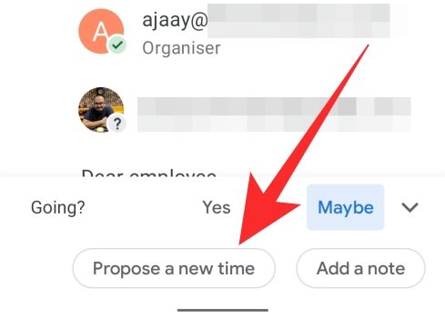 Tap on the ‘Propose a new time’ option at the bottom of the screen.