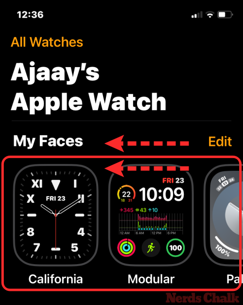 Inside Watch, you’ll see your existing watch faces inside the My Faces section at the top. This section will preview two watch faces but you can view more by swiping leftwards.