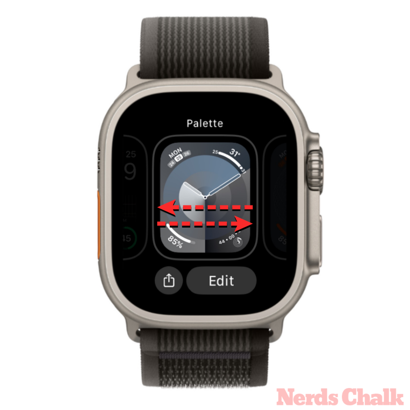 - In watchOS 10, you can only switch between the existing watch faces on your Apple Watch by long-pressing on your current face and then swiping left or right on the screen to choose a desired face.
