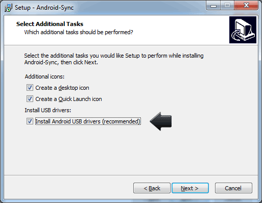 - Download the Android-Sync installer to your PC and install it by double-clicking the .exe file