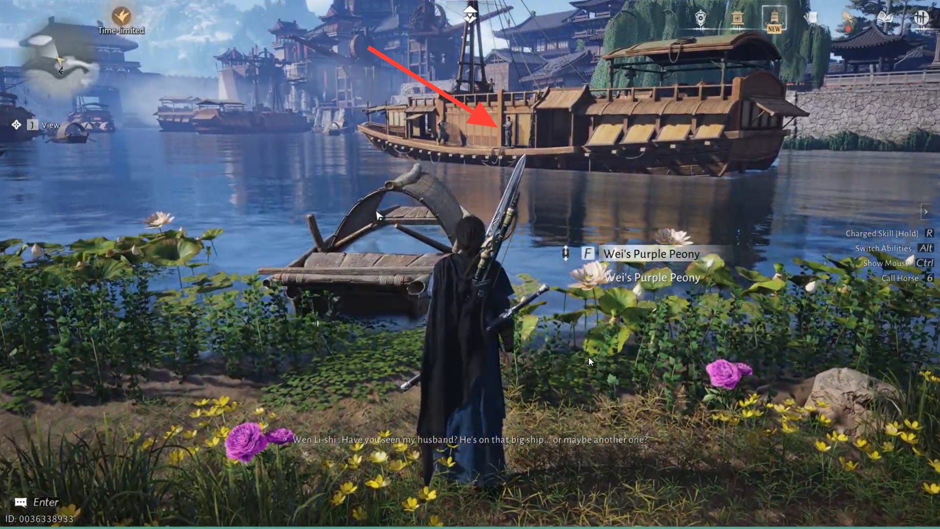 Speak to Wen Li-shi, who asks you to help find her husband, Wen Jie, a rower who worked on large boats.