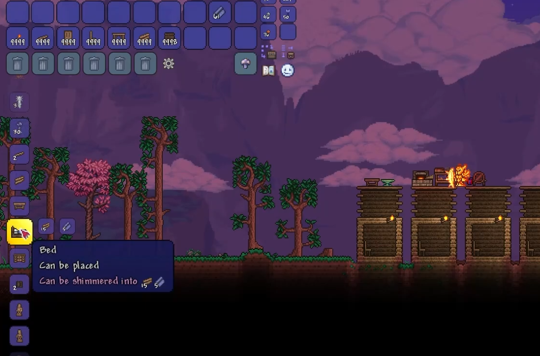 To make a bed in Terraria, you are essentially building a small crafting chain: Work Bench → Sawmill → Loom → Silk → Bed. Once you have one bed down, moving your spawn and skipping long nights becomes much easier while you explore and build.