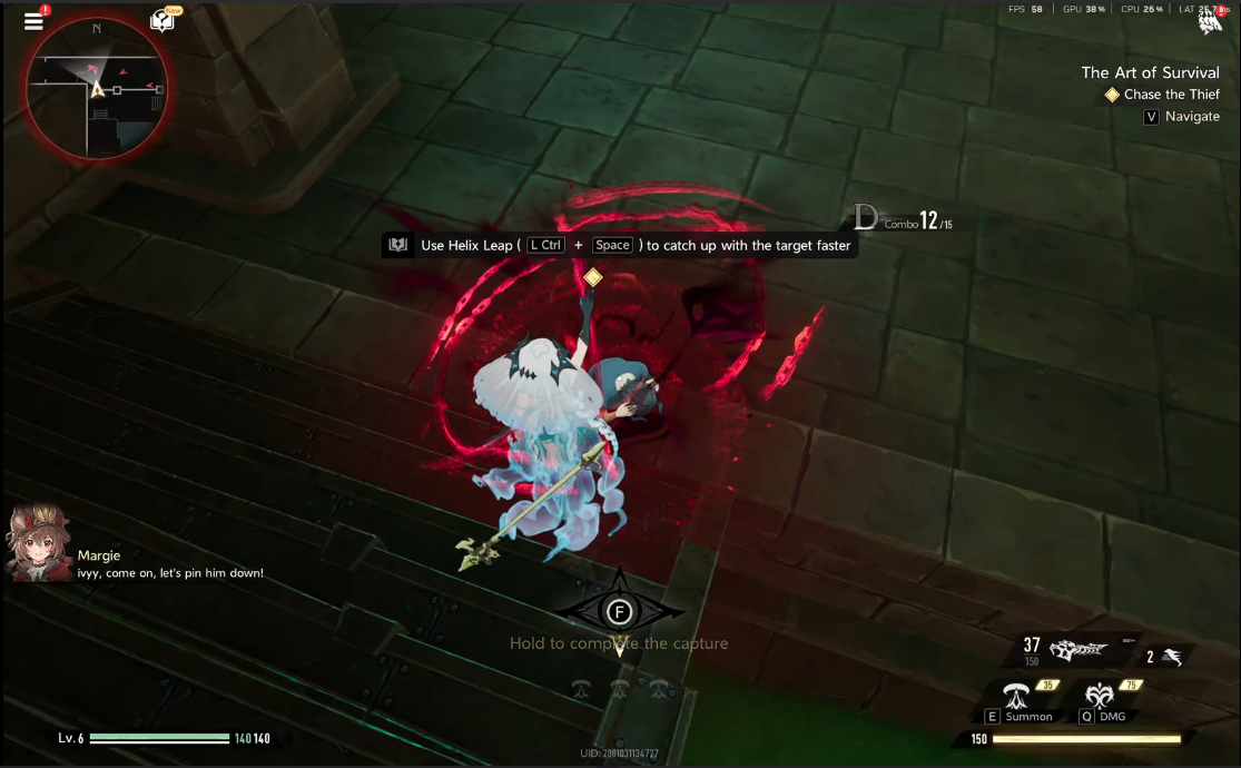 When prompted, press L Ctrl + Space to perform a Helix Leap, allowing you to vault obstacles or close distance quickly.