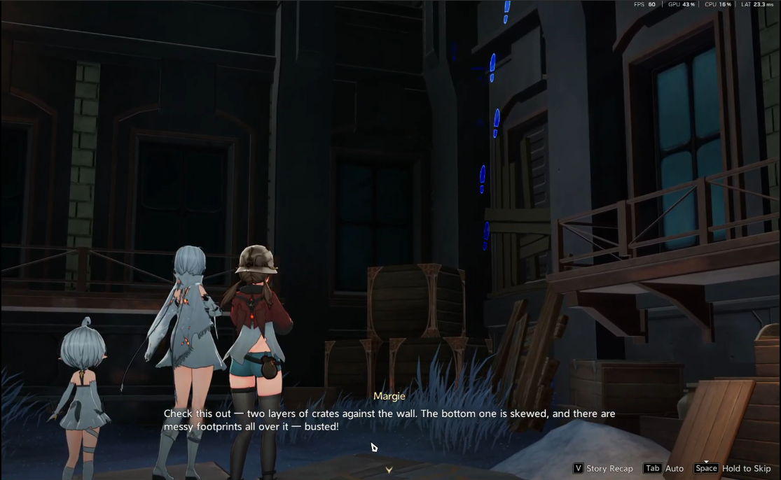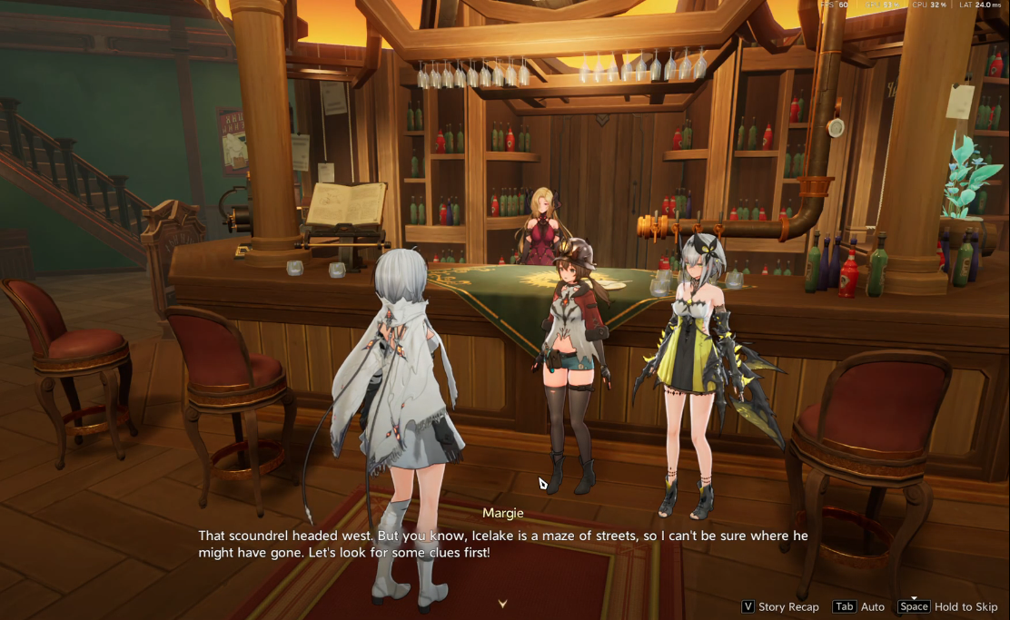Head to the central tavern located within the city hub (marked on your map with a quest icon). Upon entering, you’ll find Margie behind the counter and Psyche standing nearby. Approach Margie and interact with her by pressing F (PC default) to start the dialogue. Listen carefully as Margie explains her problem. She hints at strange disappearances and supply shortages.