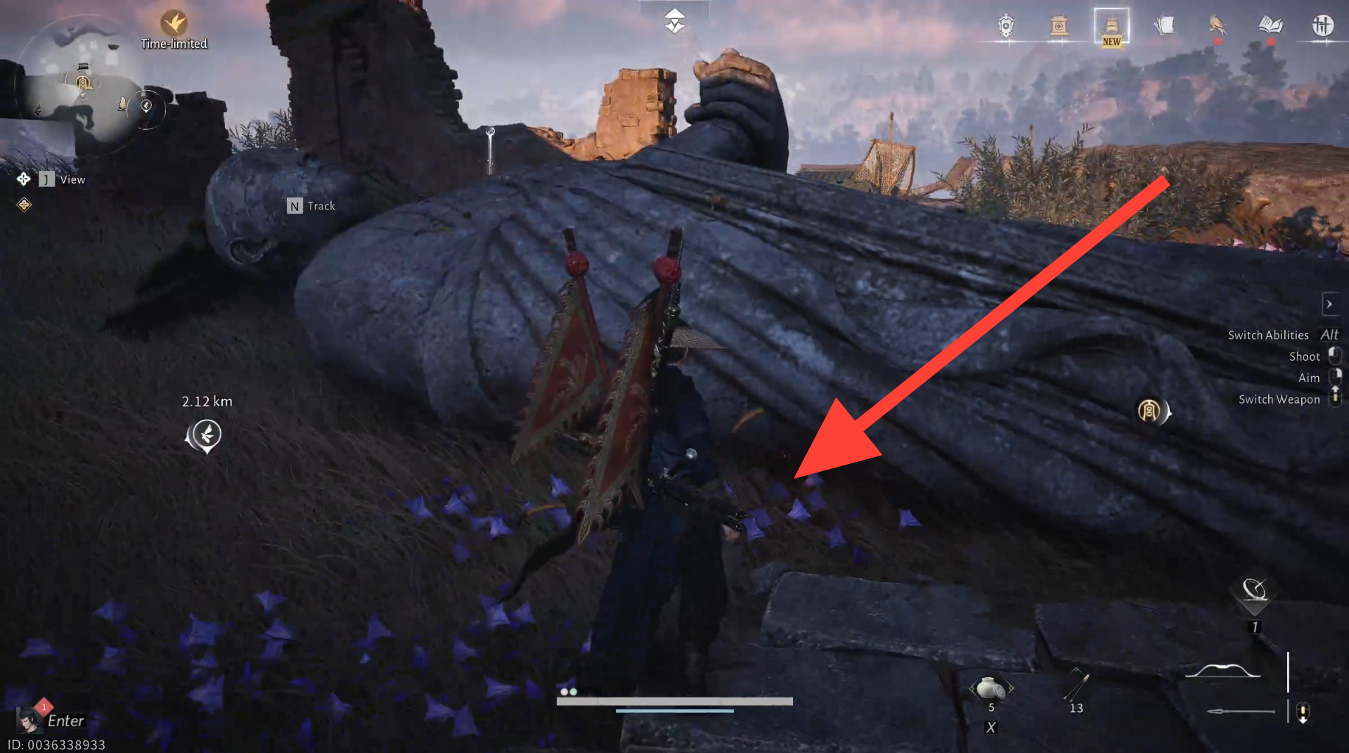 Head to the marked location above and pick up the Cursed Doll lying beneath the Fallen Buddha statue.