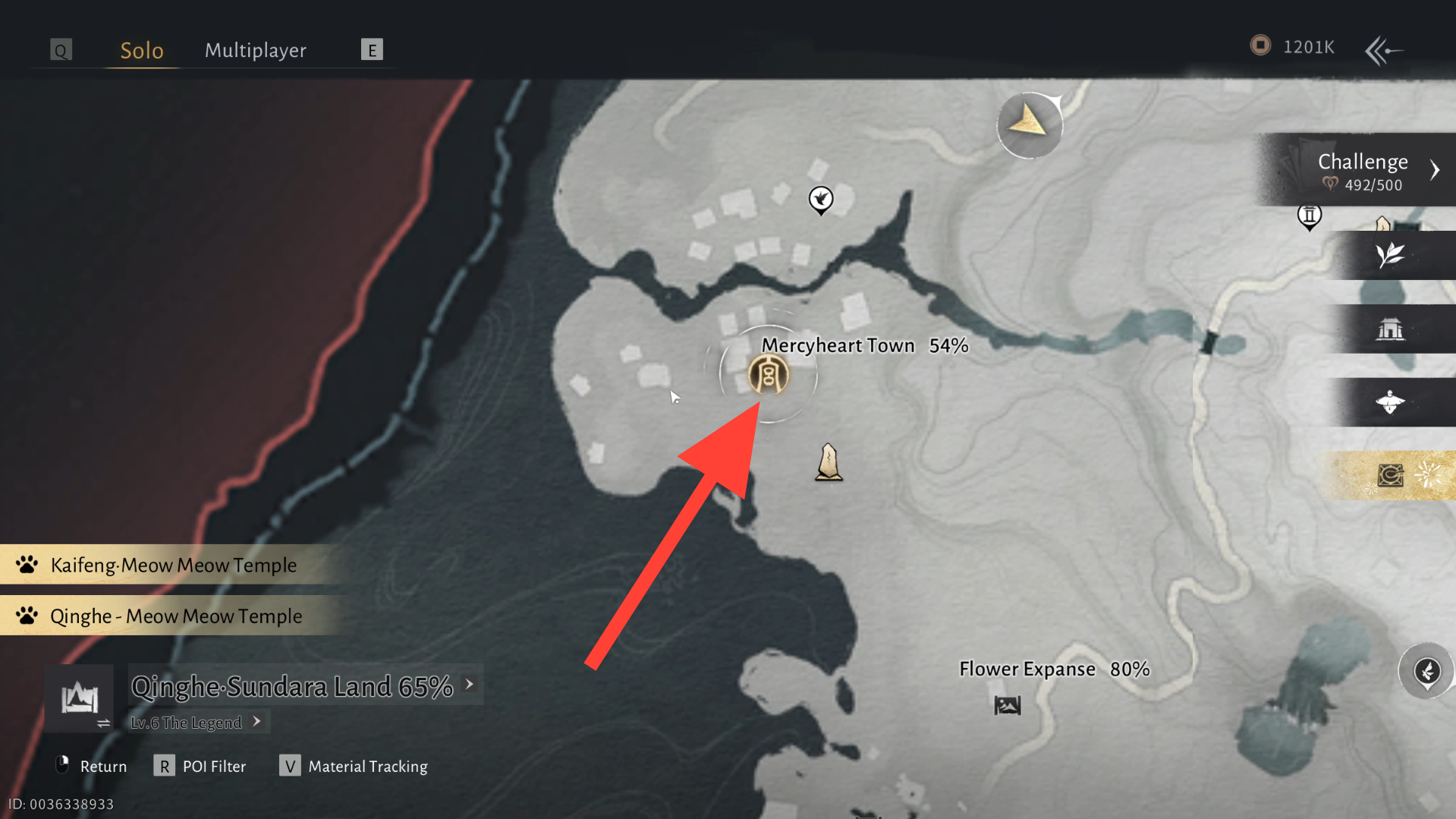 To begin the quest, head to the marked location in Mercyheart Town, Sundara Land, Qinghe, near the Fallen Buddha Statue.