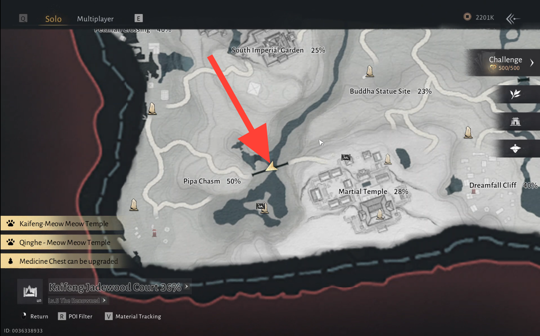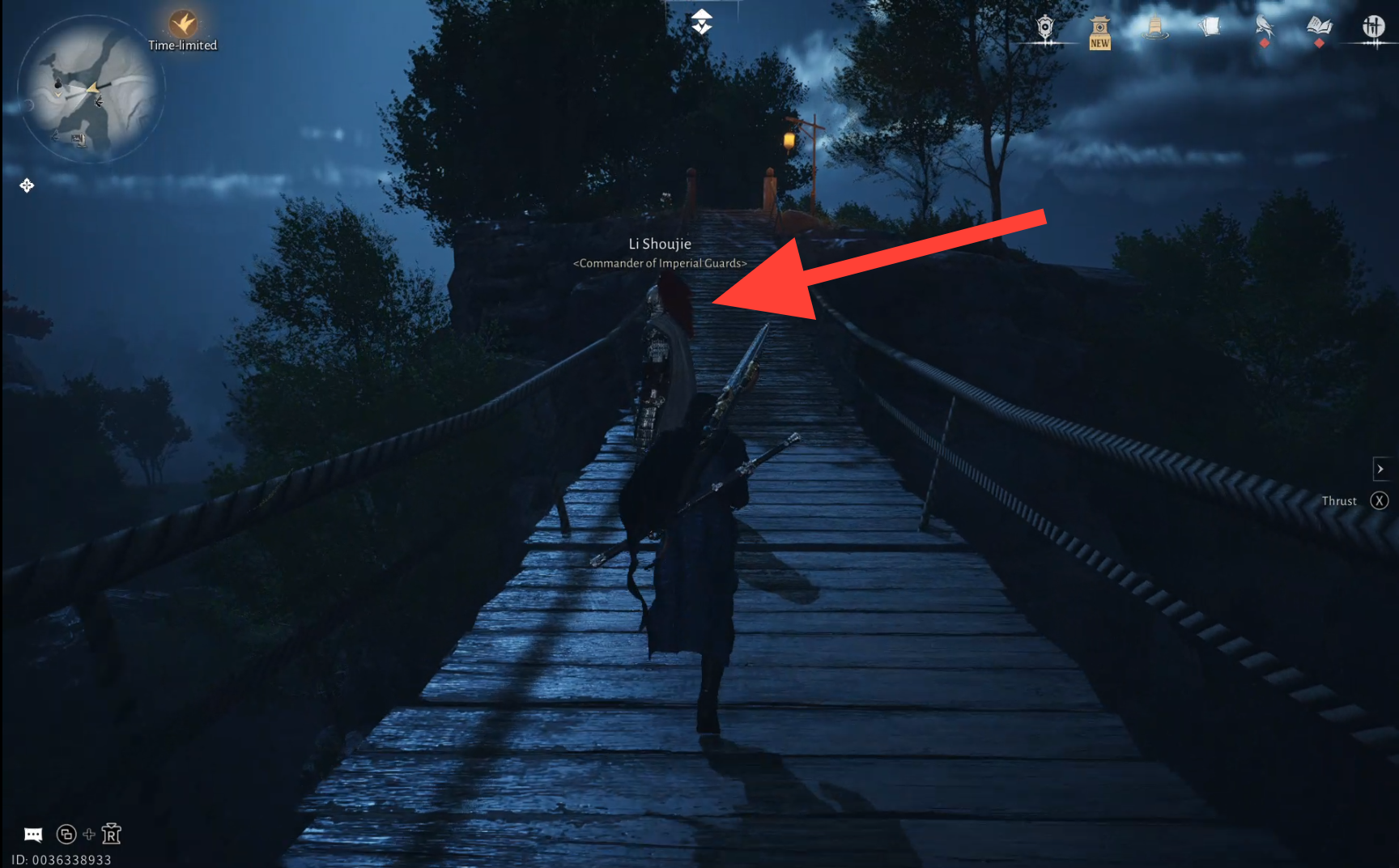 To begin this Wandering Tale, head to the bridge connecting Pipa Chasm and the Martial Temple, and speak with Li Shoujie standing on the bridge.