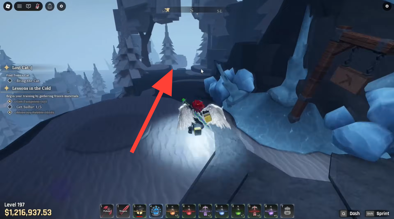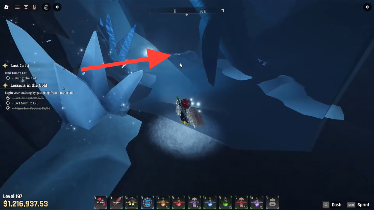 Once you have the pickaxe, return to the hidden spot and break through the ice to access and purchase the Prismatic Pickaxe.
