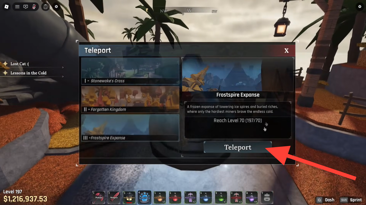 Teleport to the Frostspire Expanse map (Island 3).