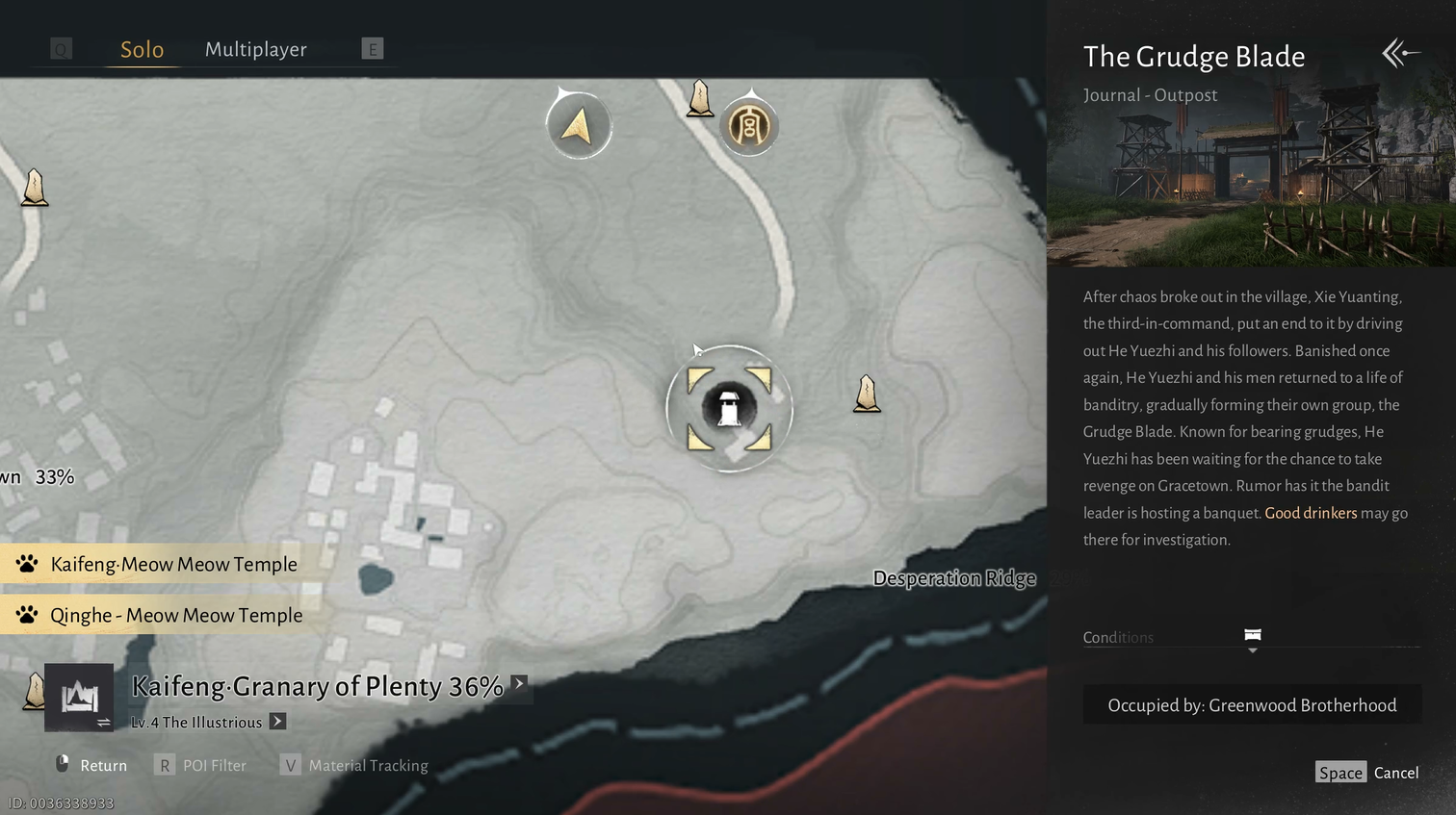 The Grudge Blade Outpost is located in the Granary of Plenty area within Kaifeng.