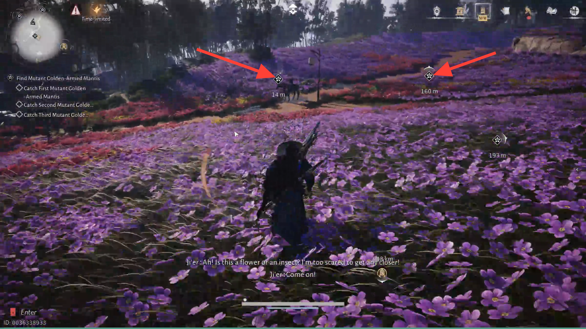 To catch all 3 Mutant Golden-armed Mantises in the flower expanse, follow each mantis carefully; they can fly and jump away. Be stern while picking them up. All 3 Mantises locations are marked as quest waypoint markers.