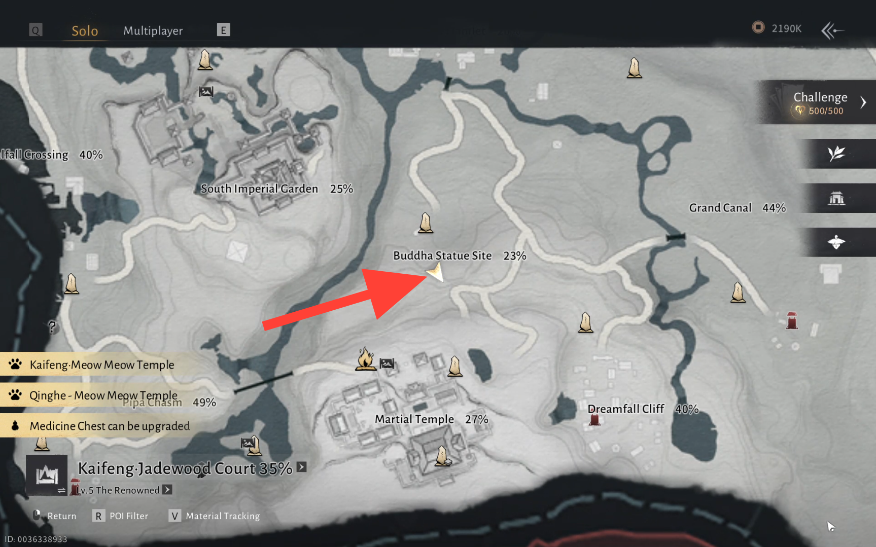 Head to the marked location below in Buddha Statue Site and enter the cave.