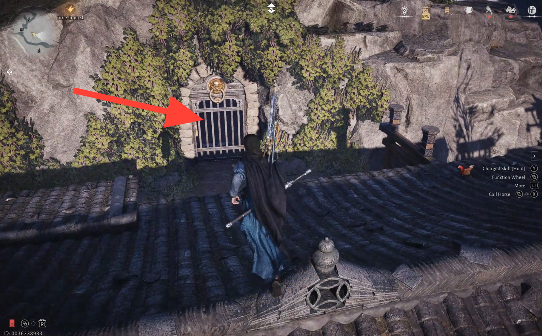 Shoot the bell with your bow, then use Celestial Seize on the locked gate to open it. Once it’s unlocked, head inside and loot the Jade of Craft.