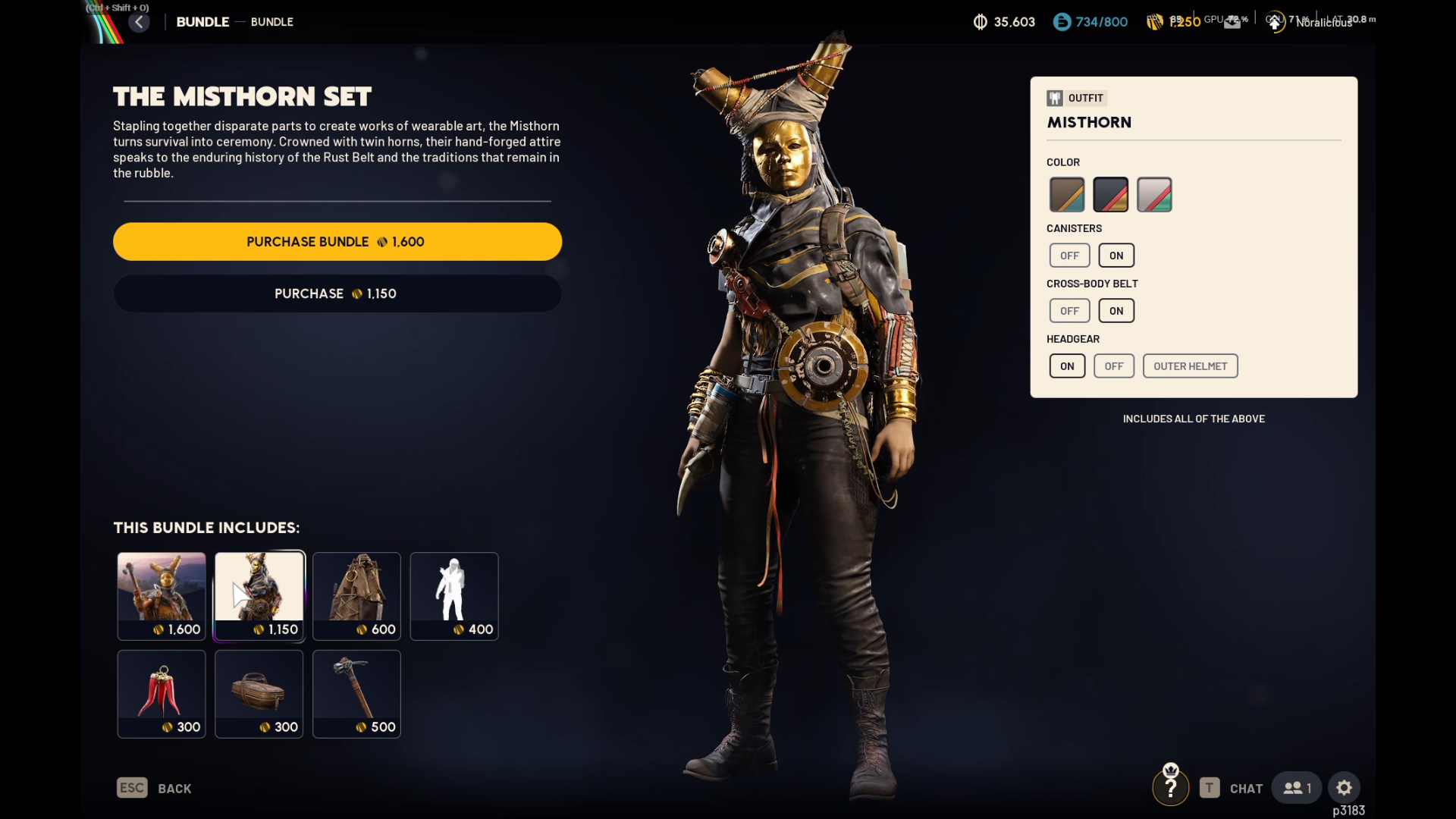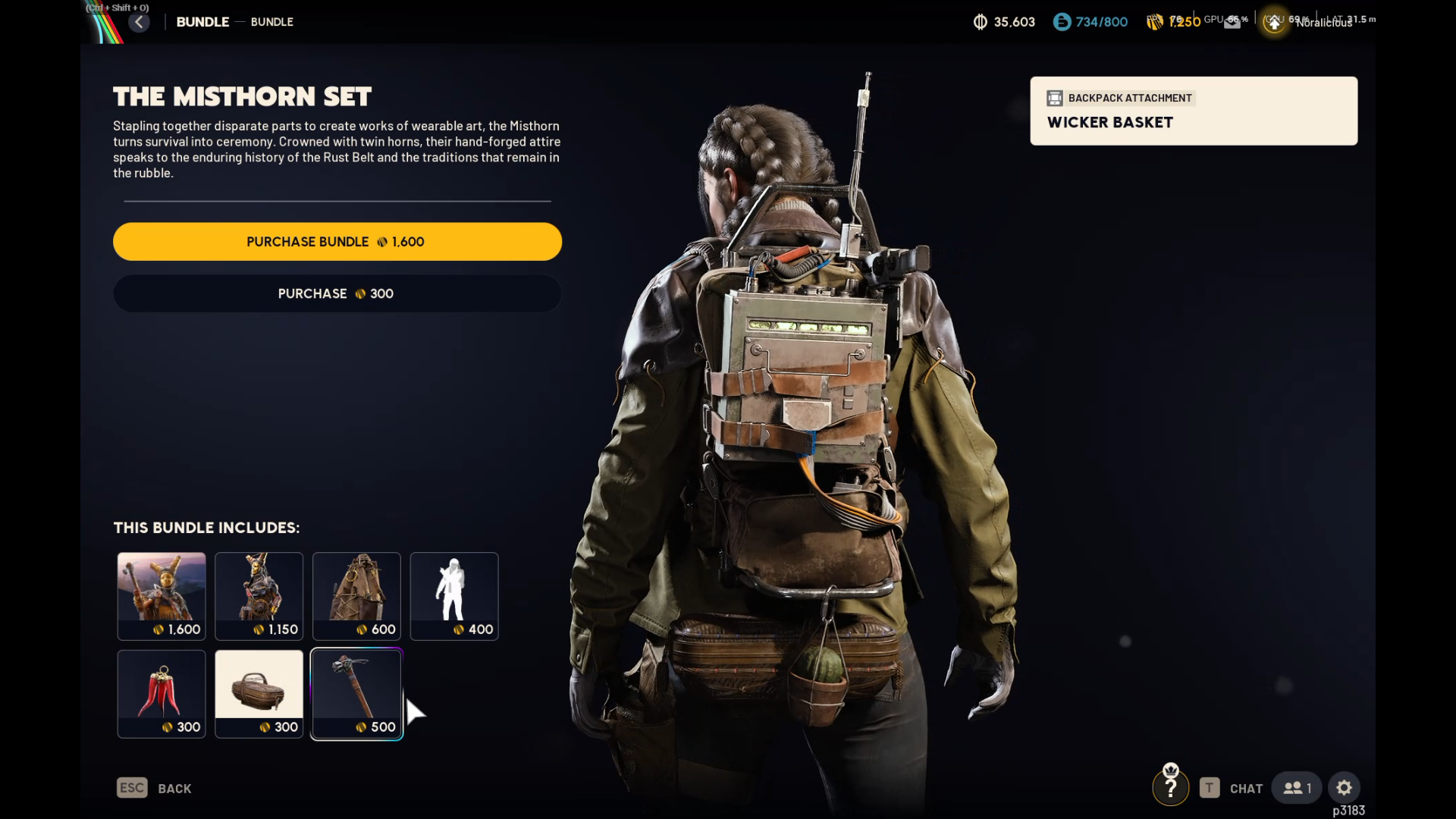 You can get the whole bundle for 1600 Raider Tokens. Or, you can get the individual items if you don't want to go all in on the Misthorn Set Bundle.