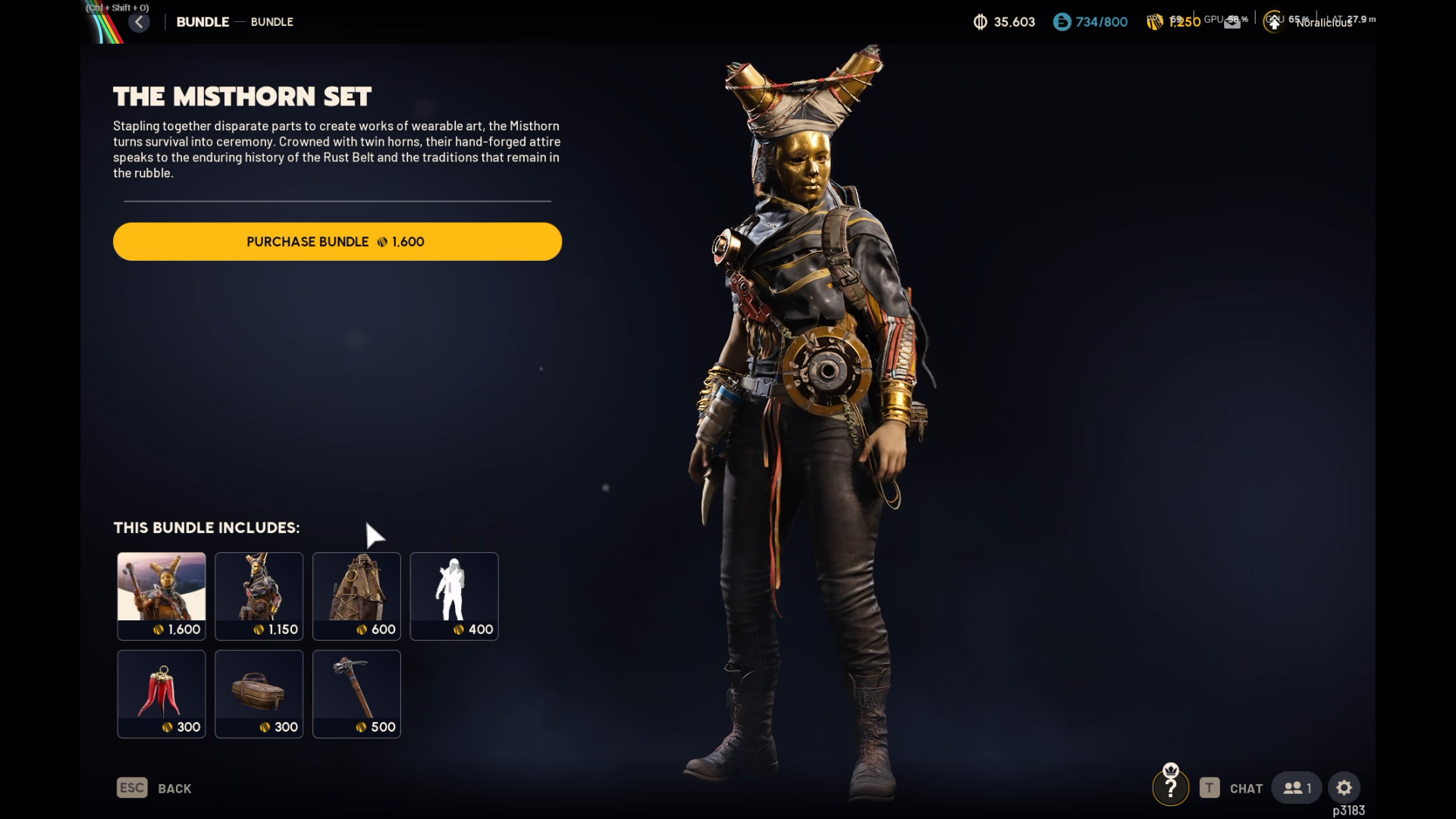 The Misthorn Set can be purchased as a bundle or as separate items. The items and their cost in Raider Tokens are as follows: