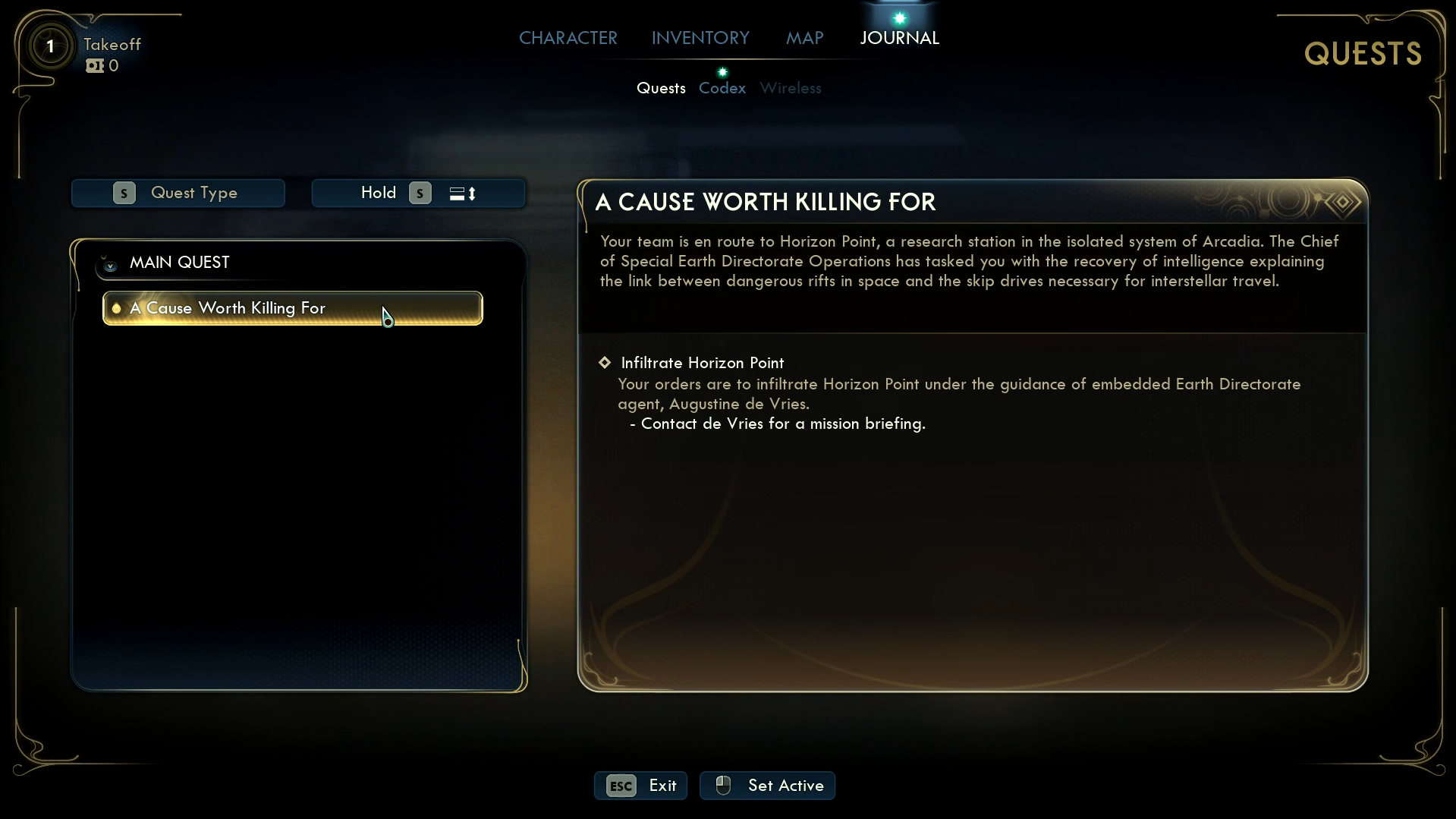 - Infiltrate Horizon Point: Your orders are to infiltrate Horizon Point under the guidance of embedded Earth Directorate agent, Augustine de Vries.