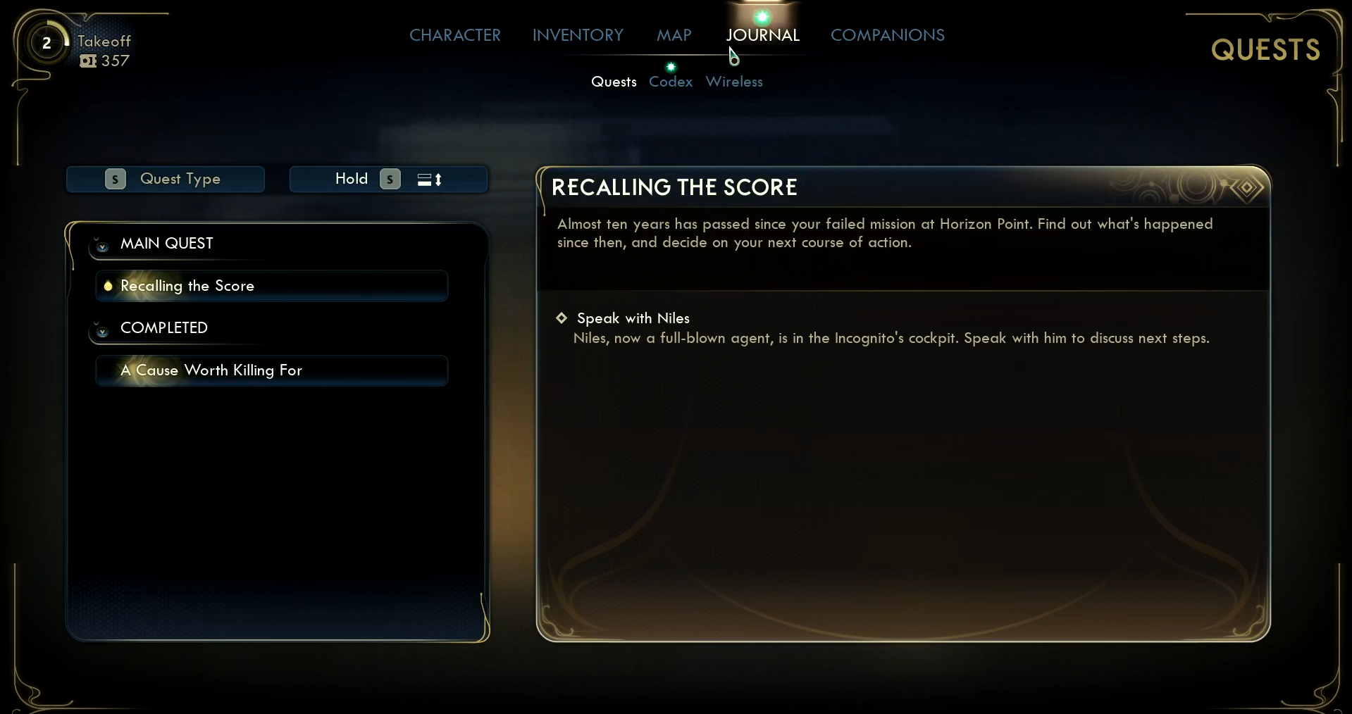 - Speak with Niles: Niles, now a full-blown agent, is in the Incognito's cockpit. Speak with him to discuss next steps.