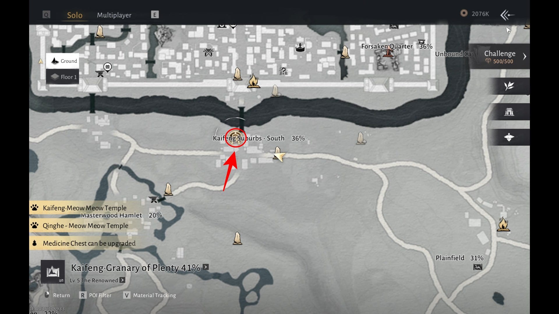 'The Turbulent Price of Grain' quest takes place in Kaifeng Suburbs - South, Granary of Plenty, Kaifeng. The exact location is given below: