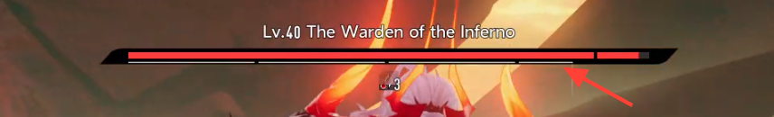 The boss employs an armor stance system where it takes damage to its armor first. The white bar below the Boss health bar (red) is the armor stance bar.