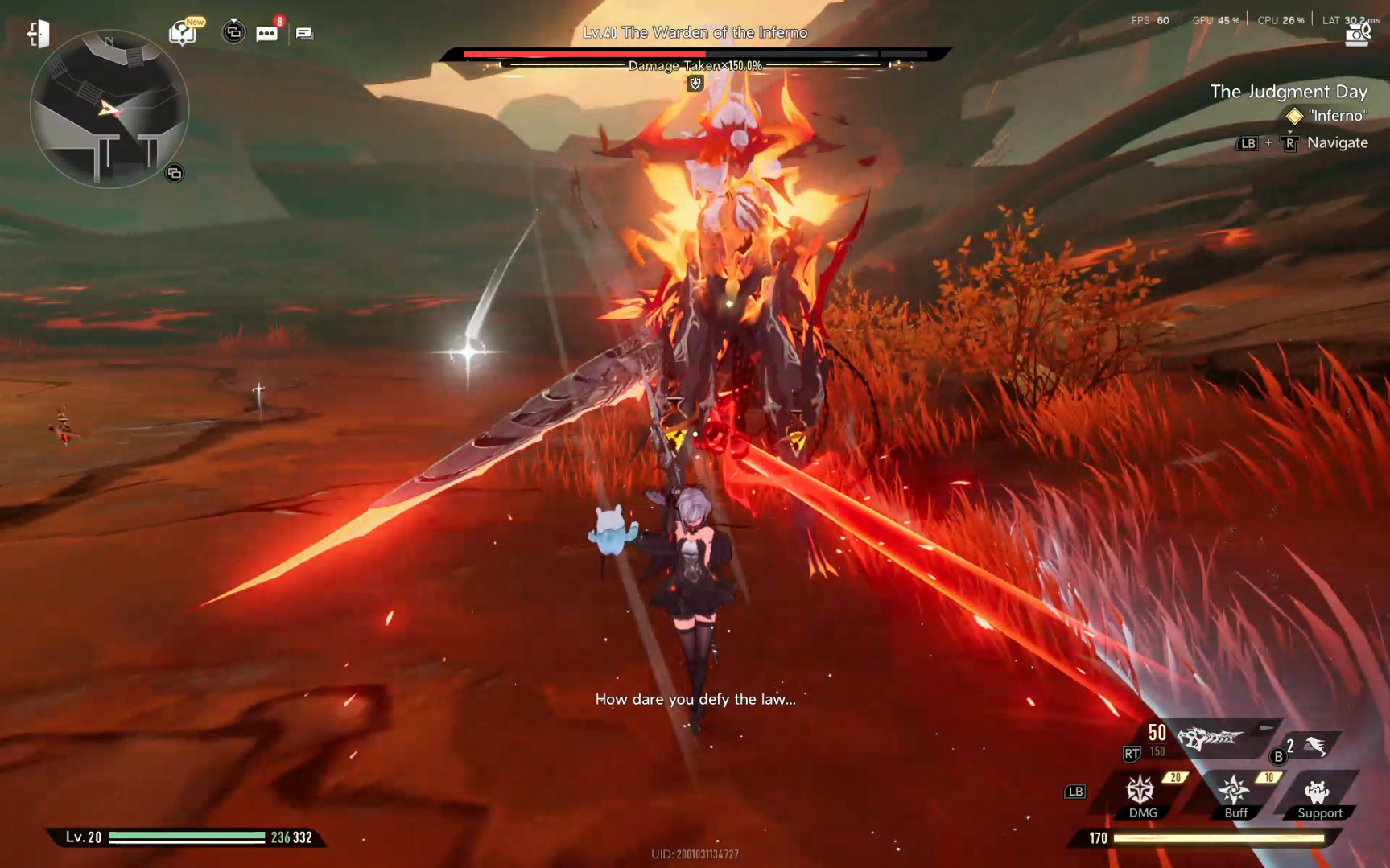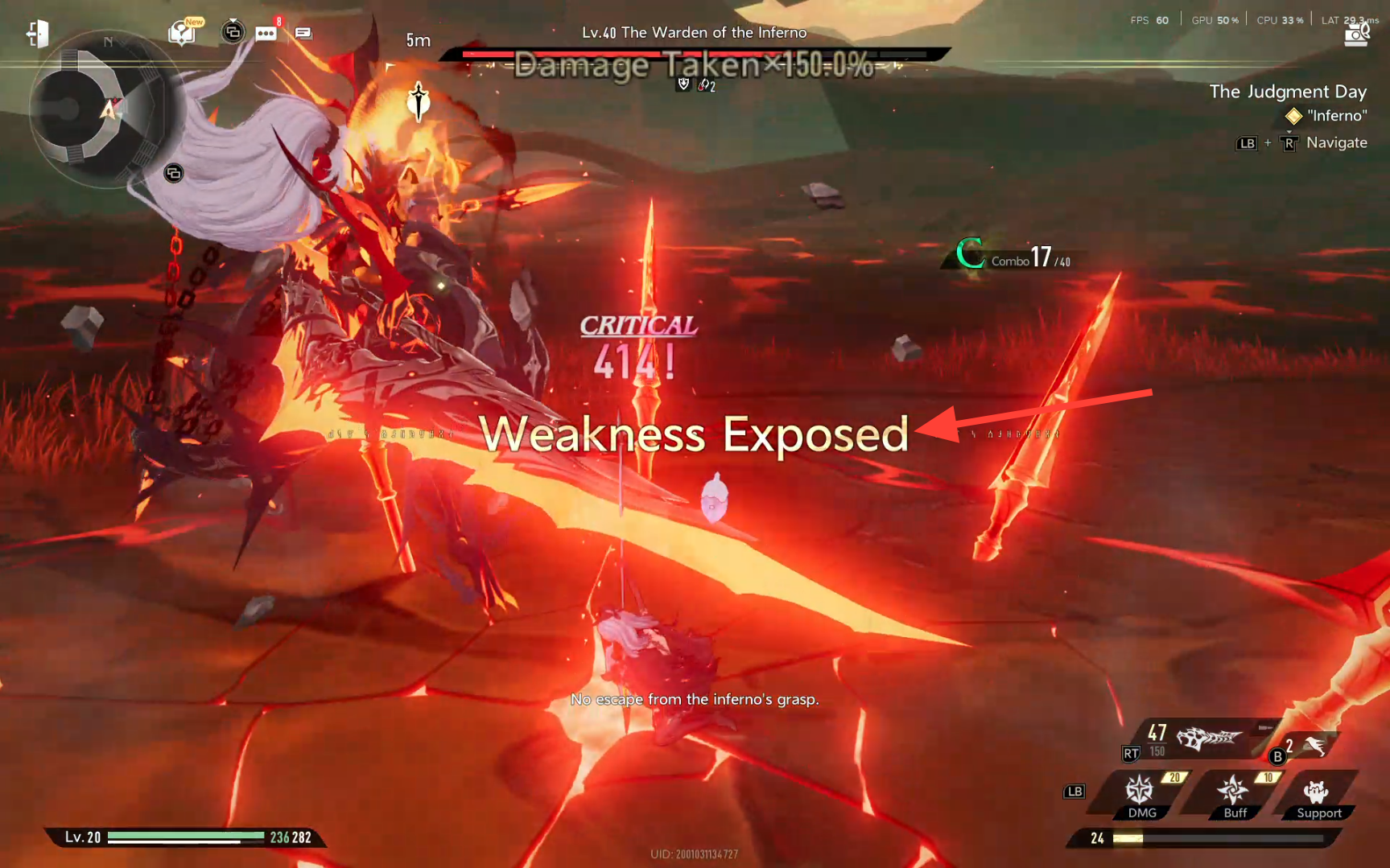 The Warden of Inferno appears in Chapter 2 during the "The Judgement Day" mission, typically reachable after progressing through earlier story bosses like Battle Maven. Its level is around 50, demanding readiness for advanced combat tactics.