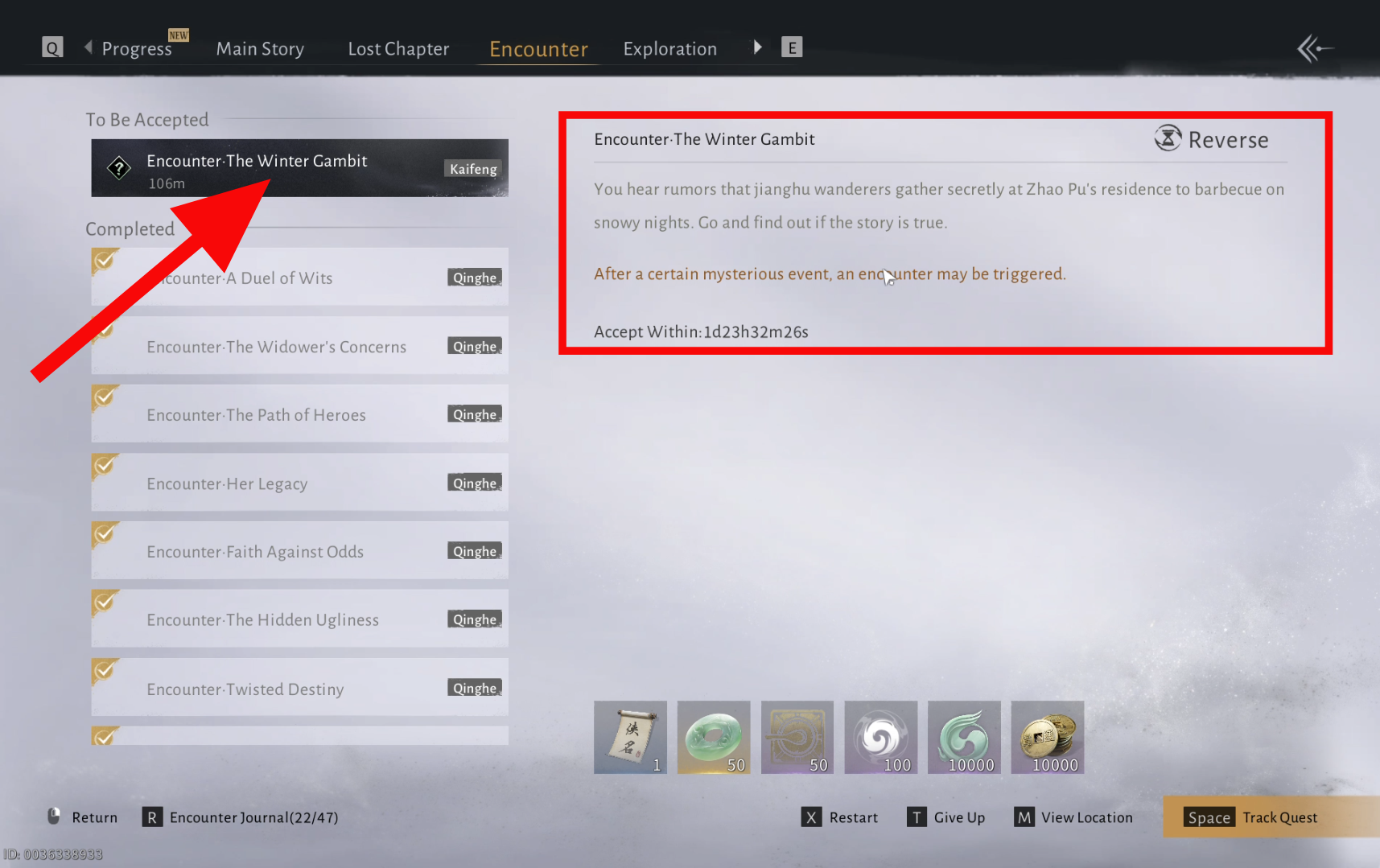 The Winter Gambit is a food-themed side quest in Where Winds Meet starting in Prosperity Haven, Kaifeng City. Examine the scroll in the top room, meet Big Zhao, then shop across Kaifeng for ingredients. Finish by delivering the Chinese Herring to earn Echo Jade, exploration points, coins, and experience.