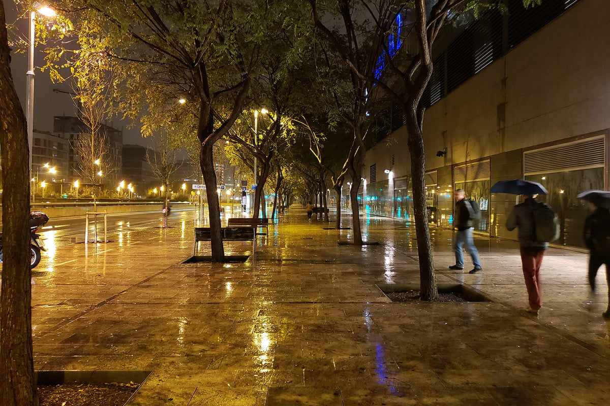 The hue of the street lights, the reflection, the wet floor, and the green color of the leaves; all beautifully caught by the Galaxy S9 Plus dual lenses.