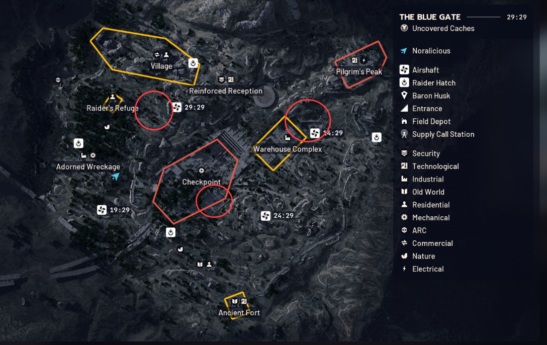 The Blue Gate – multiple outdoor spaces with snowball pickup locations and ARCs patrolling.