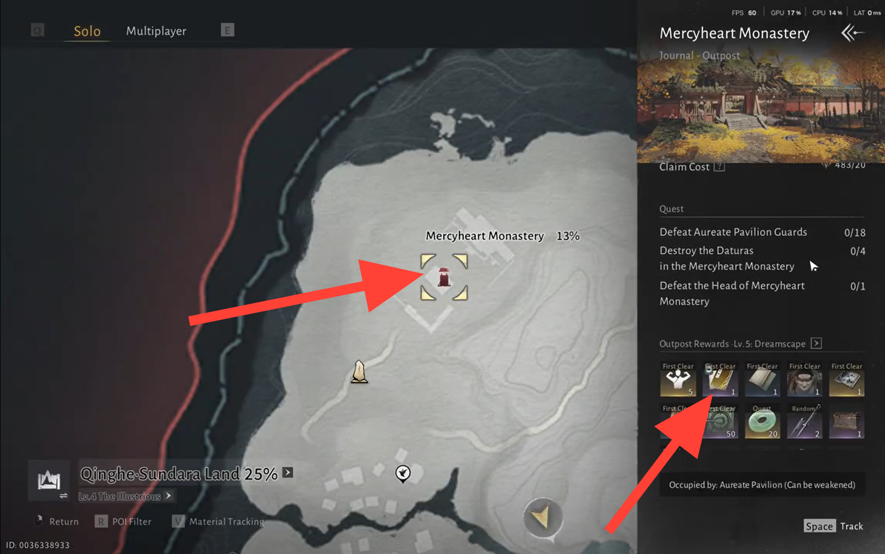 To unlock the Thunderous Bloom Inner Way, go to the marked location and defeat everyone inside the Mercyheart Monastery Outpost in Qinghe. Finishing the outpost grants the Thunderous Bloom tome, using which you can unlock the Thunderous Bloom Inner Way.
