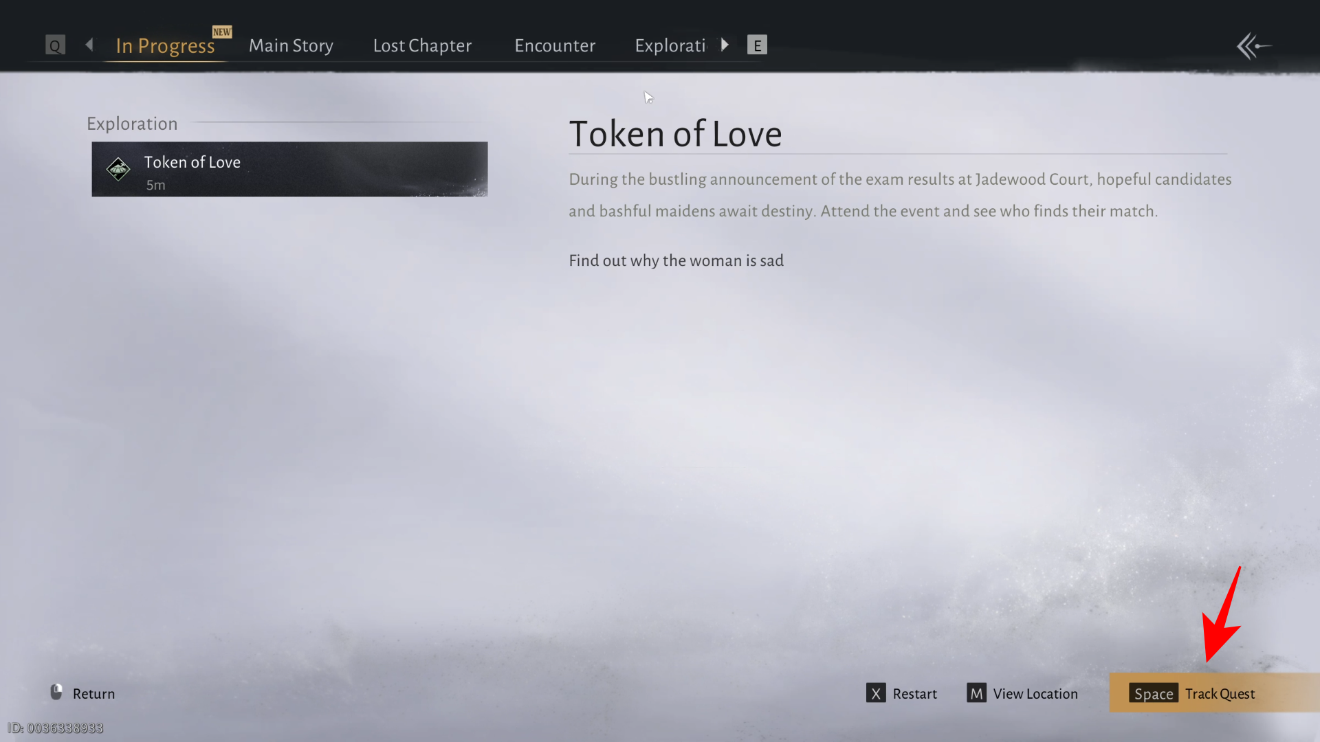 To start the quest, go to the mission tracker page, select Exploration, and then track the quest 'Token of Love'.