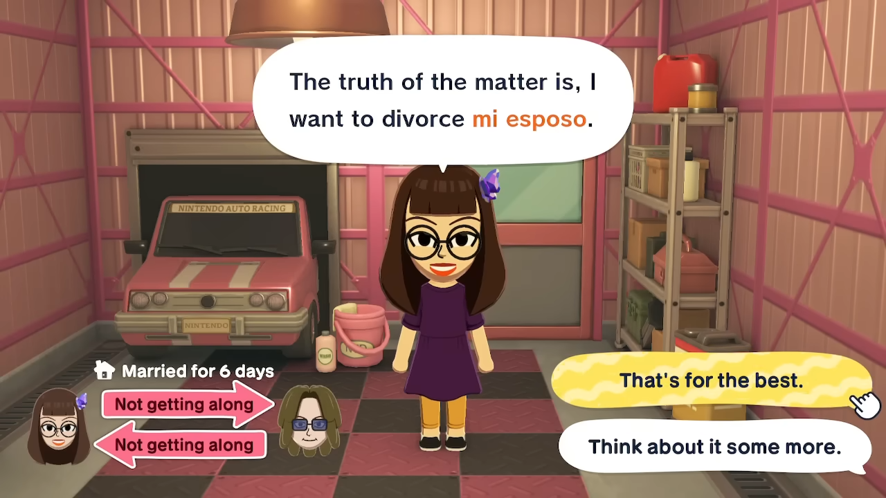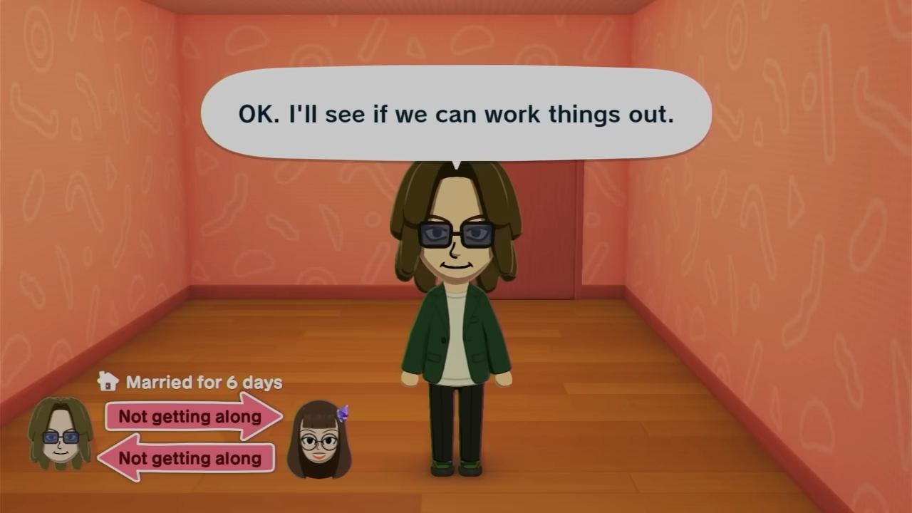 You’ll often notice warning signs before divorce happens, such as one Mii saying they’re unhappy or unsure about the relationship.