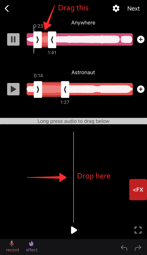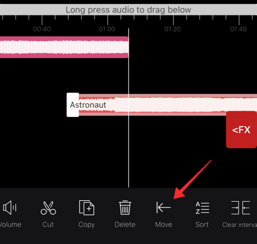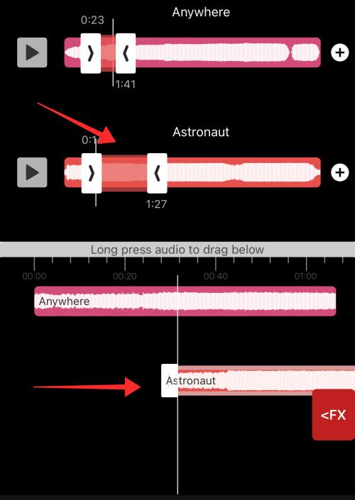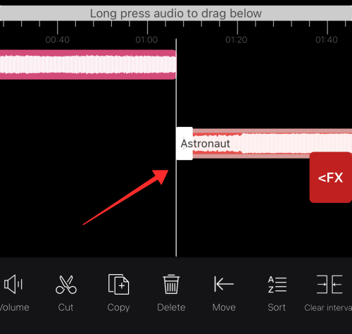 Long-press and drag the selected portion down to the timeline on the editor. You can select any part of the track following the same steps to drag it into the timeline as a separate clip.