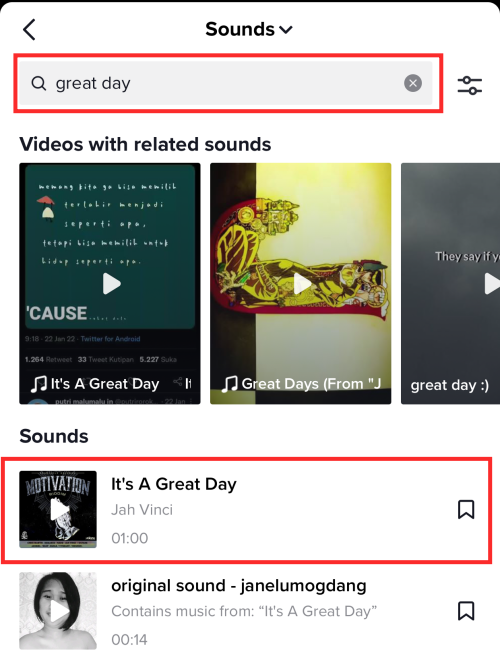 You will be taken to the app library. Search by artist or track title in the search box at the top of the page. Tap the sound/track you wish to use.
