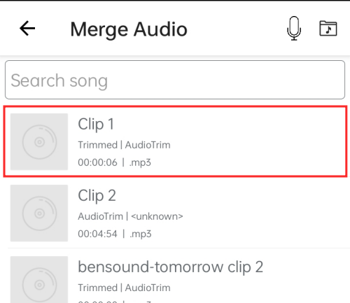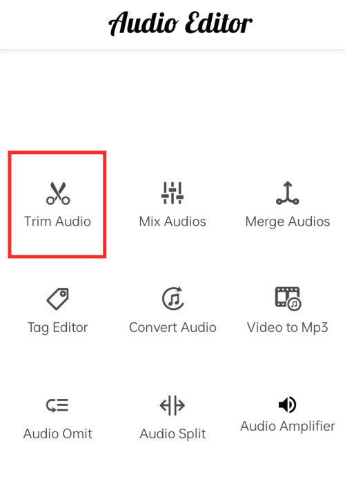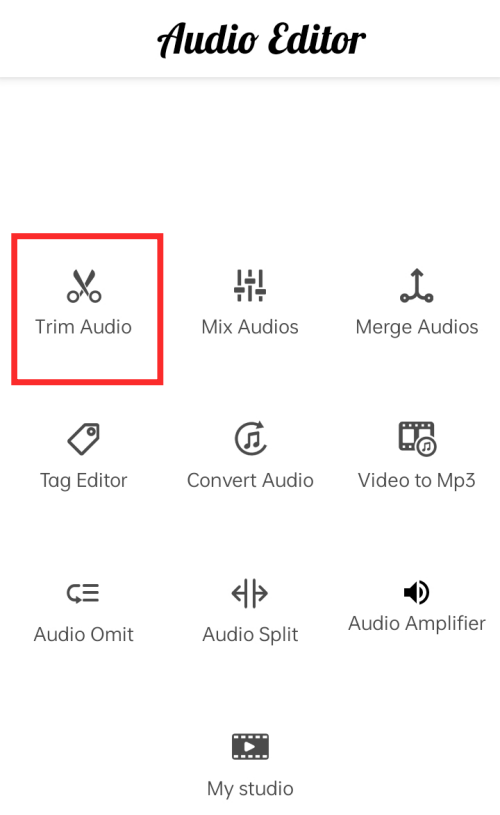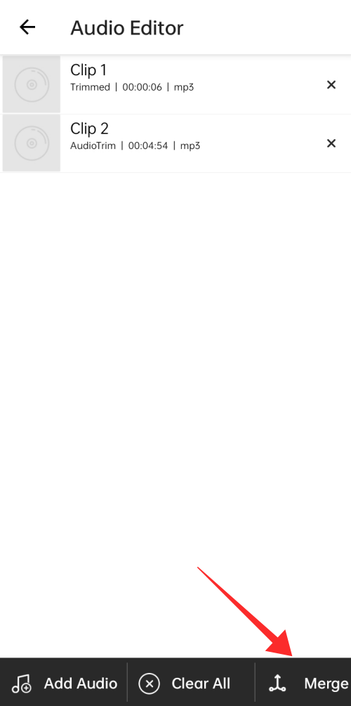The first step is to trim clips to be merged into one track. So, when you arrive on the landing page, tap Trim Audio.