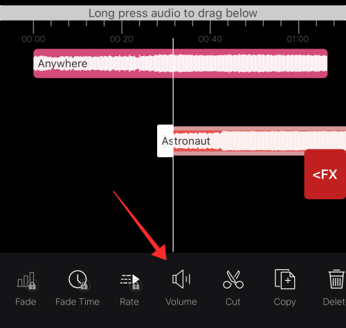 Tap Volume to increase or decrease the volume of each independent clip.