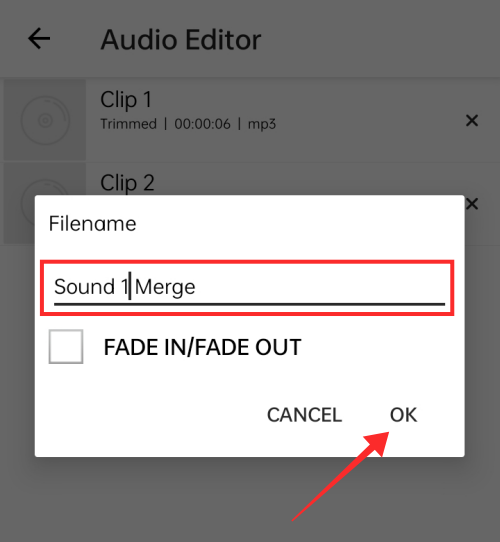 Rename the field to set a filename for the merged file and tap OK.