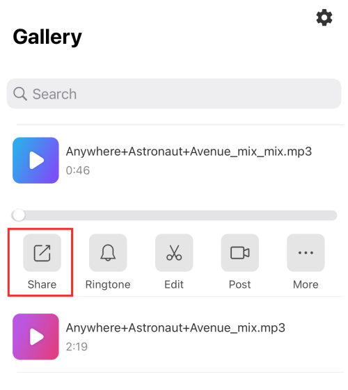 The merged music thus gets saved to your device. On the output page, tap Share.