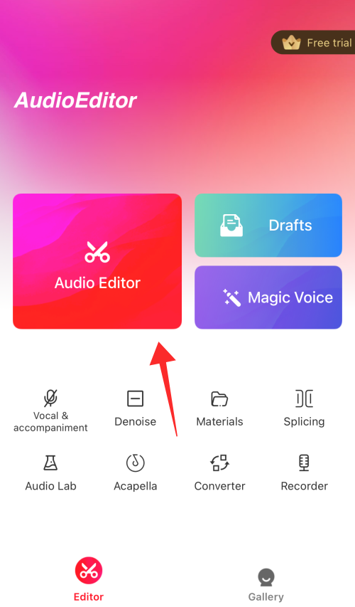 On the landing page, tap Audio Editor. Grant permission for the app to access your Apple Music library.