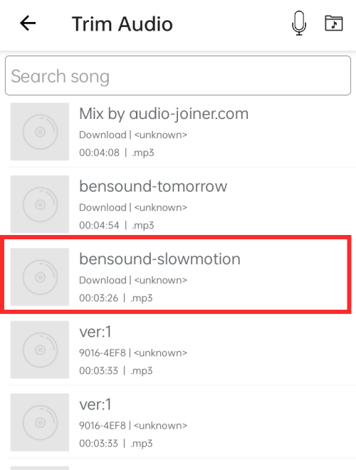 Locate and tap the audio file to select it.