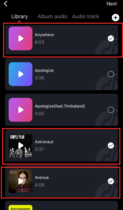 Tap a track to select it.
