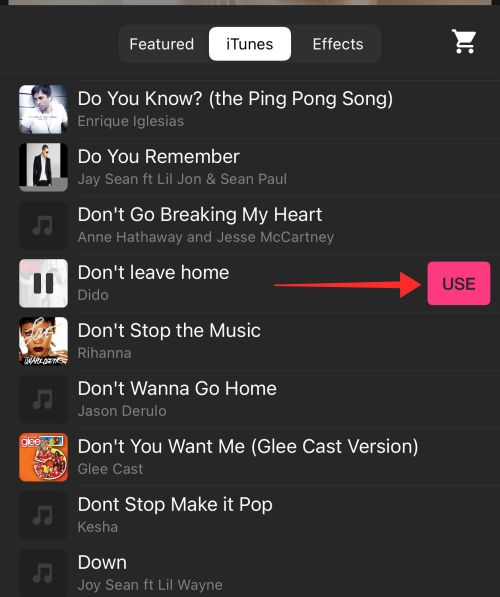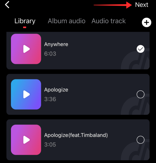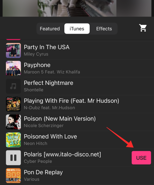 Tap any track and hit USE to bring the music over to the editor.