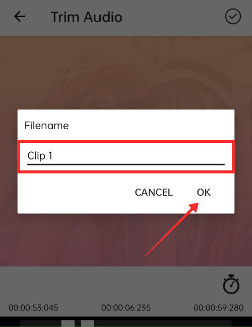 After optimizing the length and location of the clip, tap the circle button with a tick mark inside to start processing the changes.