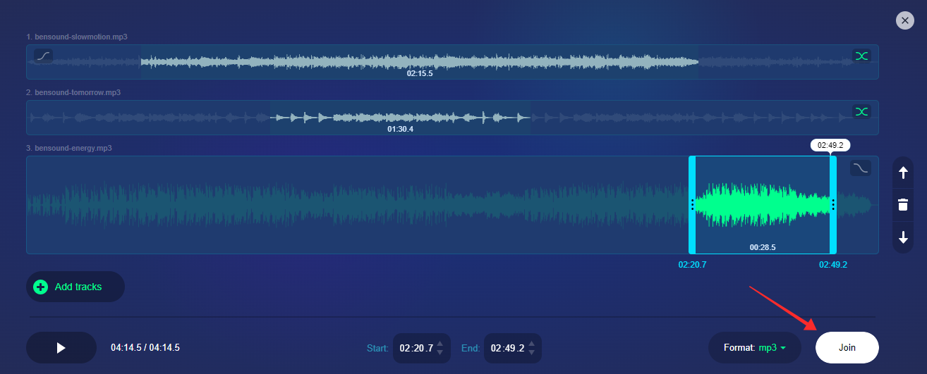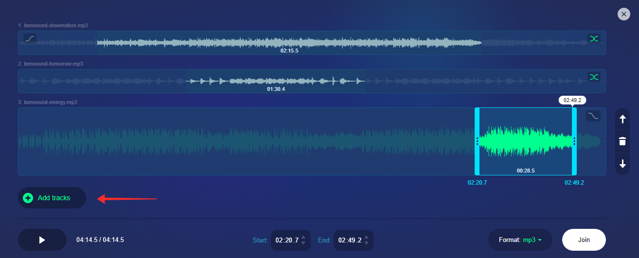 On your web browser on PC or mobile phone/iPad, go to audio-joiner.com.