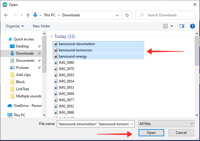 Select the audio files from your local drive. You can select more than 1 media file at once if they are all locally stored in the same folder.