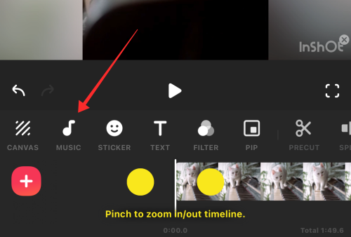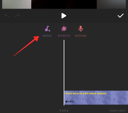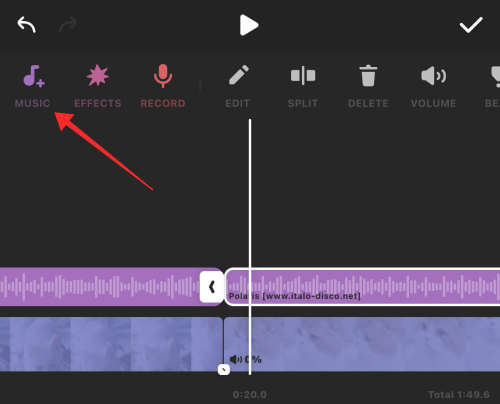 Back in the main editor, tap the MUSIC button in the tools panel.
